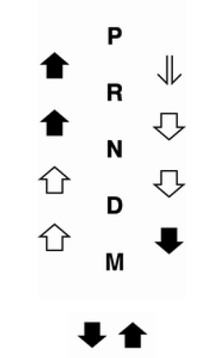 | Attenzione Non cambiare tra D (Drive) e R (Reverse) o P (Park) con il veicolo in movimento. In caso contrario, sussiste il rischio di danni al cambio e lesioni personali. |