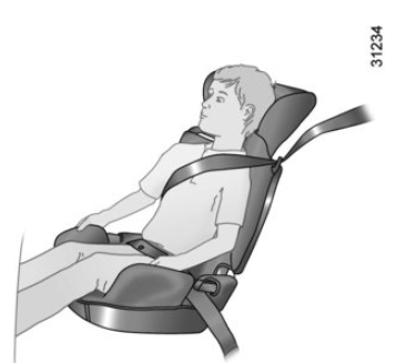 Rialzi A partire da 15 kg o 4 anni, il bambino può viaggiare su un rialzo che permette di adattare la cintura di sicurezza alla sua morfologia. La seduta del rialzo deve essere dotata di guide che posizionano la cintura sulle cosce del bambino e non sul ventre. Lo schienale regolabile in altezza e dotato di una guida della cintura è raccomandato per posizionare la cintura al centro della spalla.